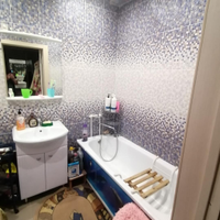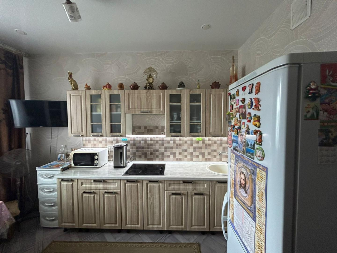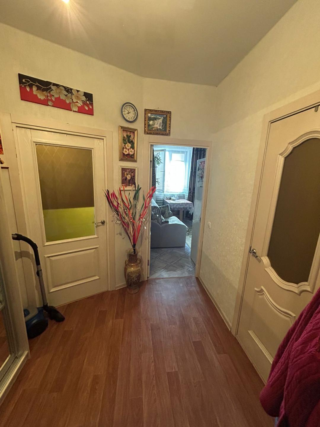 —В квартире новый кухонный гарнитур. В ванной комнате— кафель. На полу уложен хороший линолеум. Качественные межкомнатные двери. В прихожей большой встроенный шкаф. Также покупателям остается хороший шкаф в комнате.
