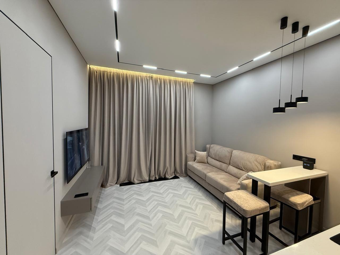 Эта евро-двушка – результат индивидуального дизайн-проекта, реализованного мастерами высочайшего уровня и квалификации. В отделке использовались только премиальные материалы от ведущих мировых производителей, что гарантирует безупречное качество и долговечность.