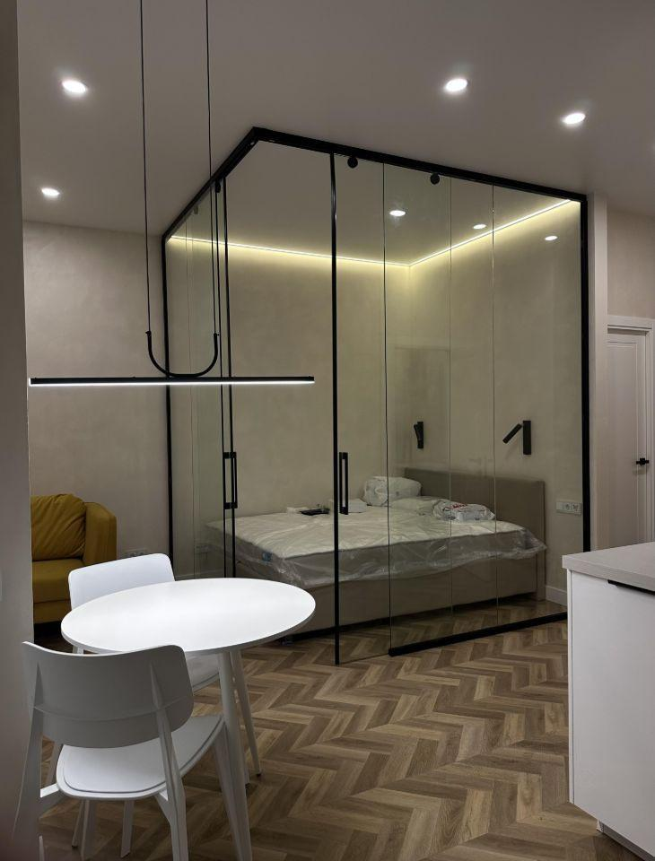 Квартира (ключевые факты):Ремонт: Эксклюзивный, по дизайн-проекту. Дорогие материалы.Комплектация: Полностью с мебелью и техникой. Без вложений.Планировка: Продуманная эргономика. Вместительная гардеробная, раздельные спальня и гостиная.Особенности: Высокие потолки, панорамные окна во двор, тихий средний этаж, система приточной вентиляции.