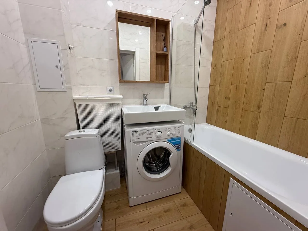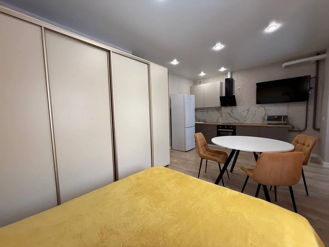 В квартире просторная кухня-гостинная и комната ,что создаёт уютную атмосферу гармонии и комфорта. Выполнен современный евроремонт из качественных стройматериалов.