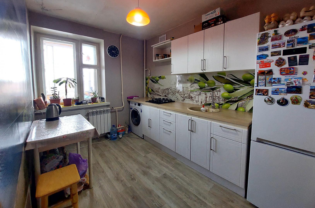 •частично сделан свежий ремонт (обои, пол ламинат + линолиум, межкомнатные двери, в с/у полностью заменены трубы-требует ремонта)просторная лоджия затеклена— идеальное место для отдыха с восхитительным видом на Успенский собор;функциональная планировка: достаточно места для зонирования и хранения;имеется тамбур на две семьи;светлая и тёплая квартира, комфортная для проживания.
