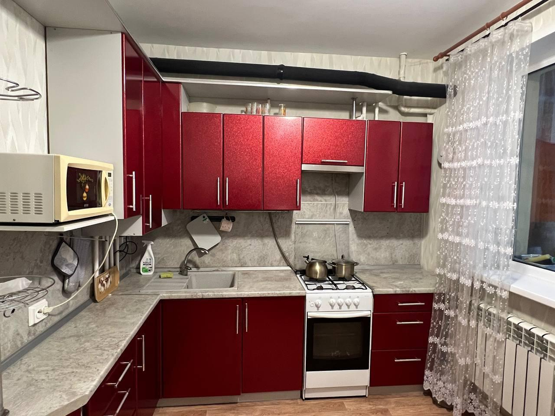 1- Квартира расположена в удобном районе с развитой инфраструктурой. В шаговой доступности находятся: магазины и супермаркеты, школы и детские сады.