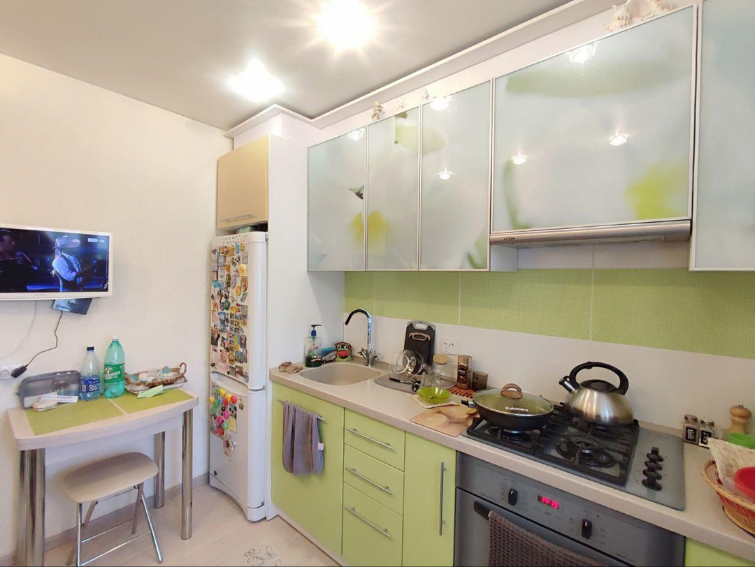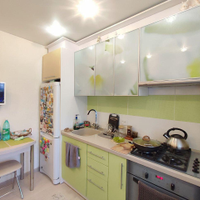 - Сделан отличный ремонт в классическом стиле: новая электропроводка, ламинат по всей квартире, выполнено зонирование на гостиную и спальню, большая кухня с удобным гарнитуром, где можно расположить дополнительное спальное место, обустроенная лоджия, откуда открывается красивый вид на городские пейзажи. Установлены счетчики на свет, газ и воду. Санузел в обычном состоянии, сантехника хорошая, трубы и стояк поменяны.