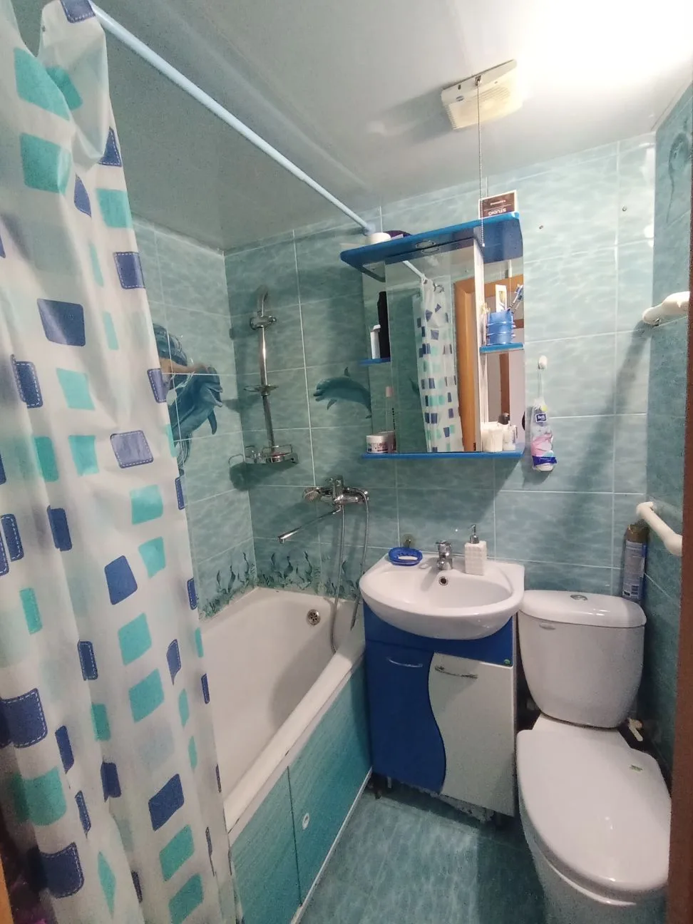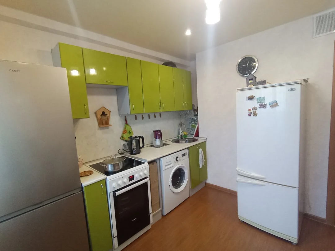 В квартире остается шифоньер в комнате, кухонный гарнитур и всё наполнение ванной комнаты;