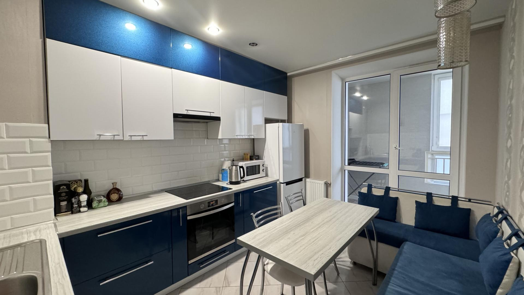 Большая кухня с выходом на лоджию и просторная комната также с выходом на лоджию! На лоджии тёплый пол..имеется встроенный шкаф! Алюминиевые радиаторы обеспечивают отличную теплоотдачу, квартира очень теплая, окна пластиковые, стеклопакет двухкамерный.