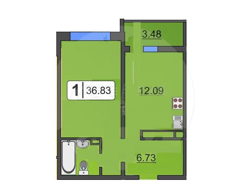 Общая площадь: 36,83 м²