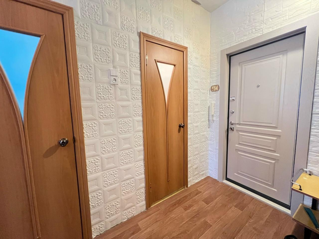 В квартире сделан качественный ремонт: заменены стеклопакеты, выровнены стены, установлена новая входная дверь с шумоизоляцией, заменены стояки холодной и горячей воды, канализация, балкон застеклен.