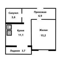 Общая площадь: 36,8 кв.м.