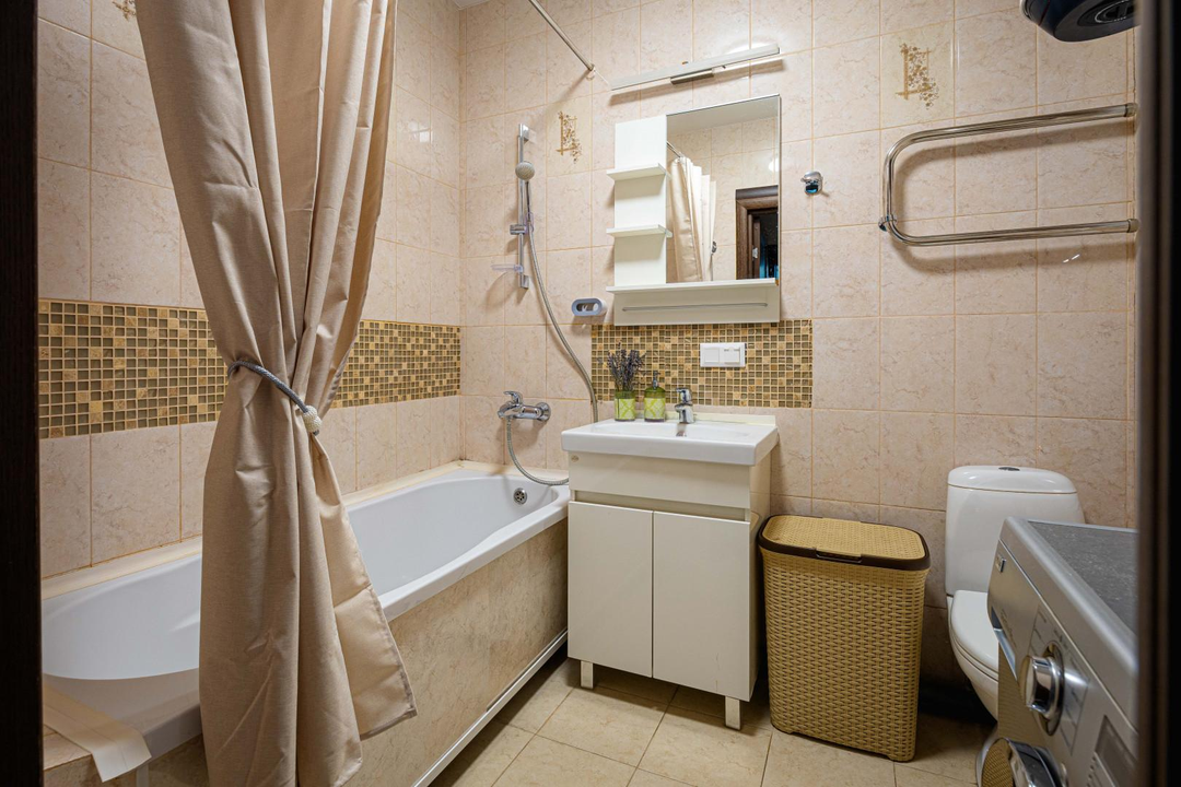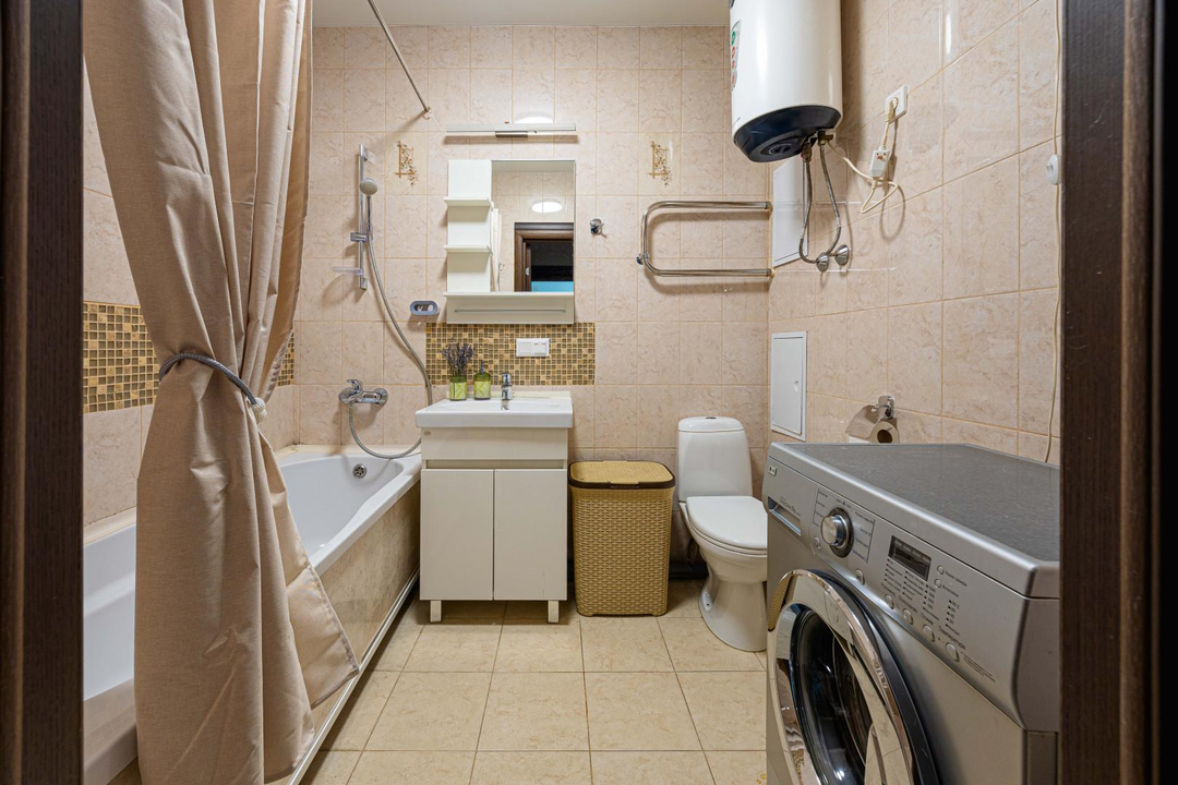 - в ванной кафель/современная стиральная машина LG,