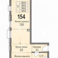1-комнатная квартира 36,8 м² в новом жилом комплексе бизнес-класса.
