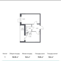 Адрес: Московская область, г. Люберцы, пос. Мирный, ул. Академика Северина, д. 10Площадь: 36 кв. мЭтаж: 12 из 17