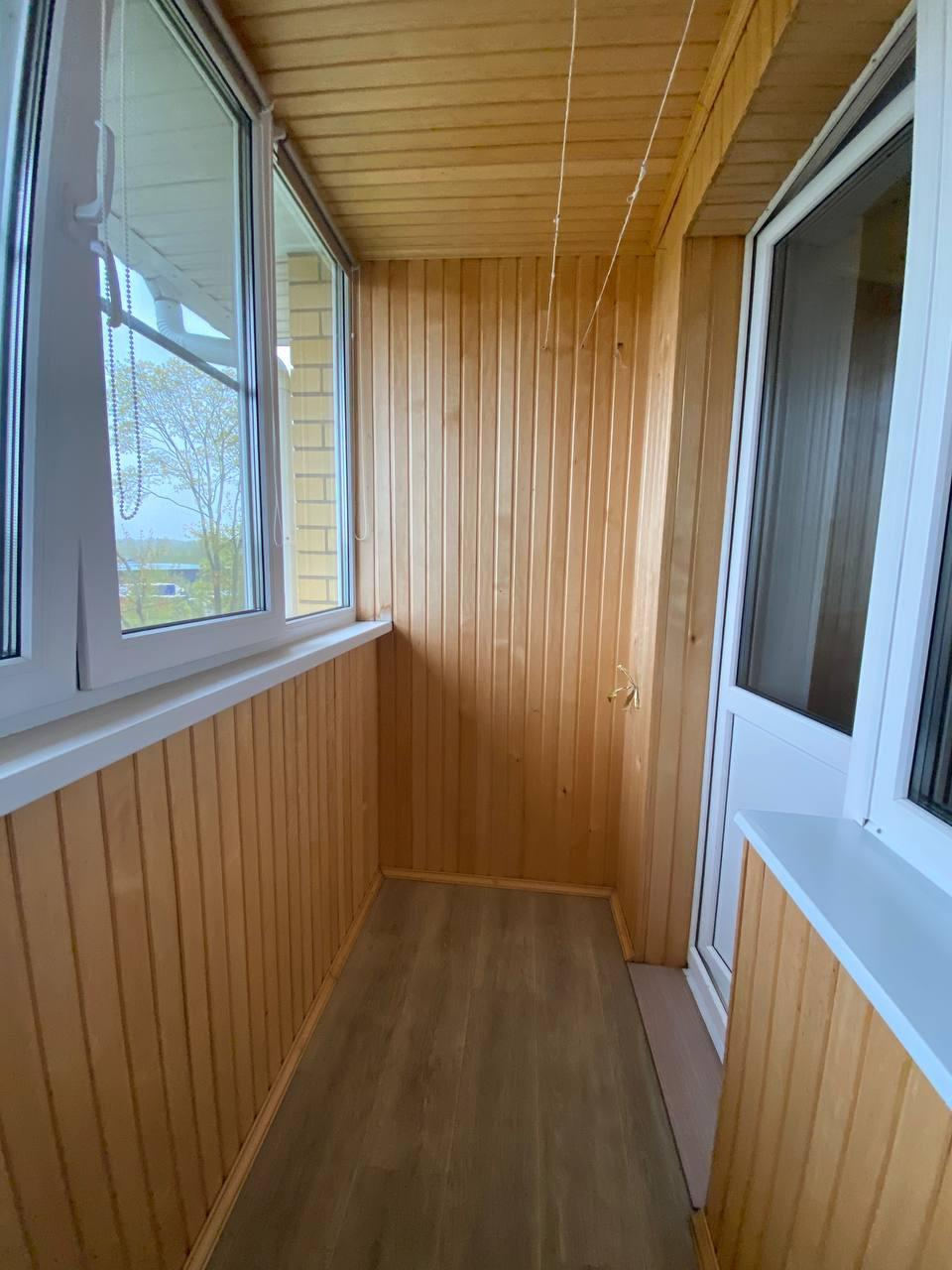 -Ламинат в комнате, плитка в ванной, качественный линолеум на кухне и в прихожей