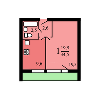Площадь: Общая 37 кв.м, жилая 19 кв.м, кухня 9 кв.м.