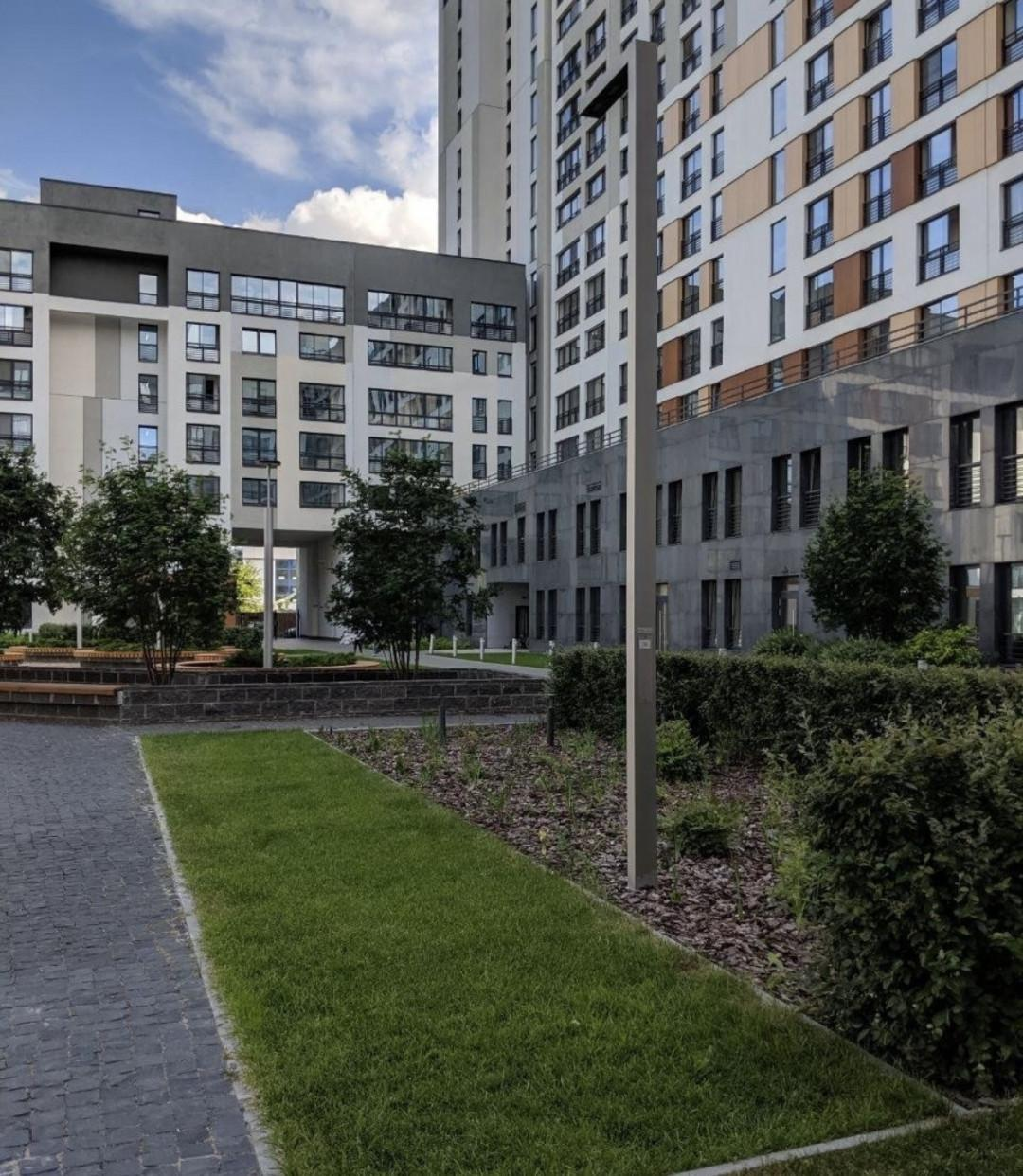 Зеленый двор -много деревьев и газонов