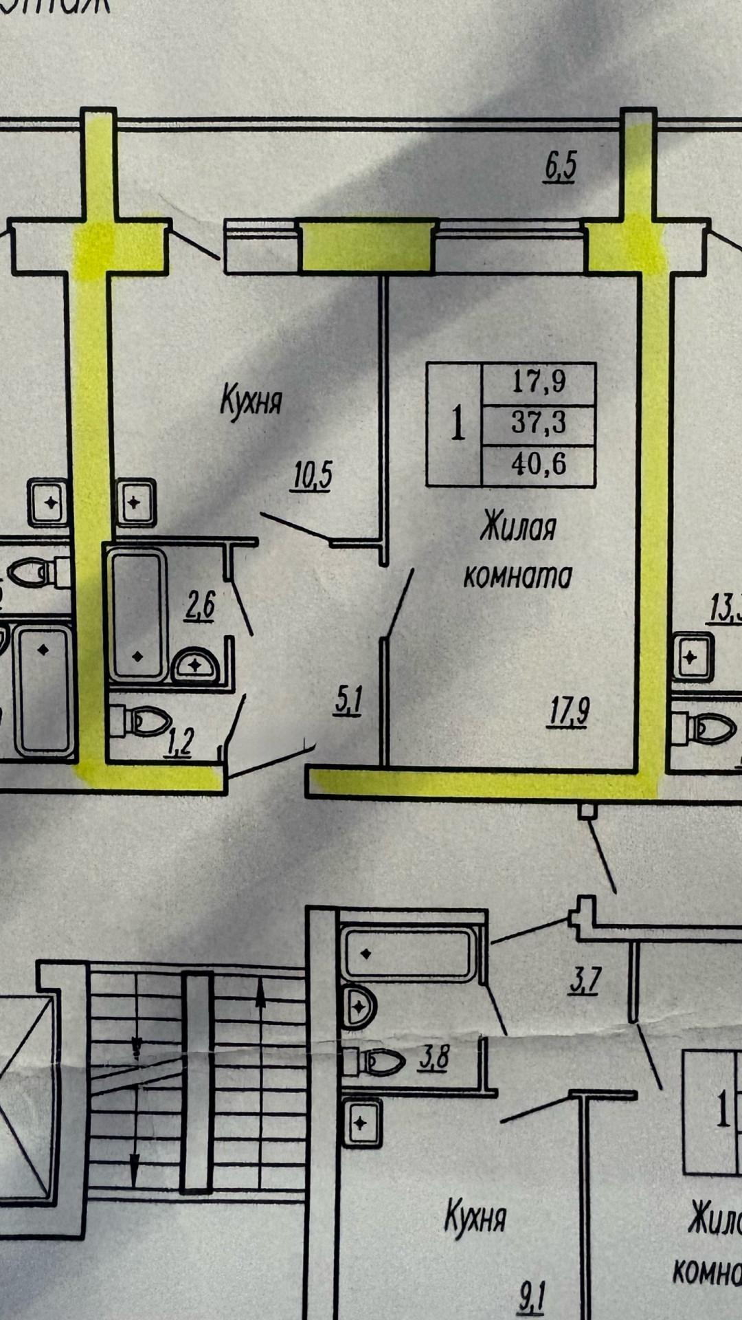 Общая площадь с учётом балкона: 41 кв.м.