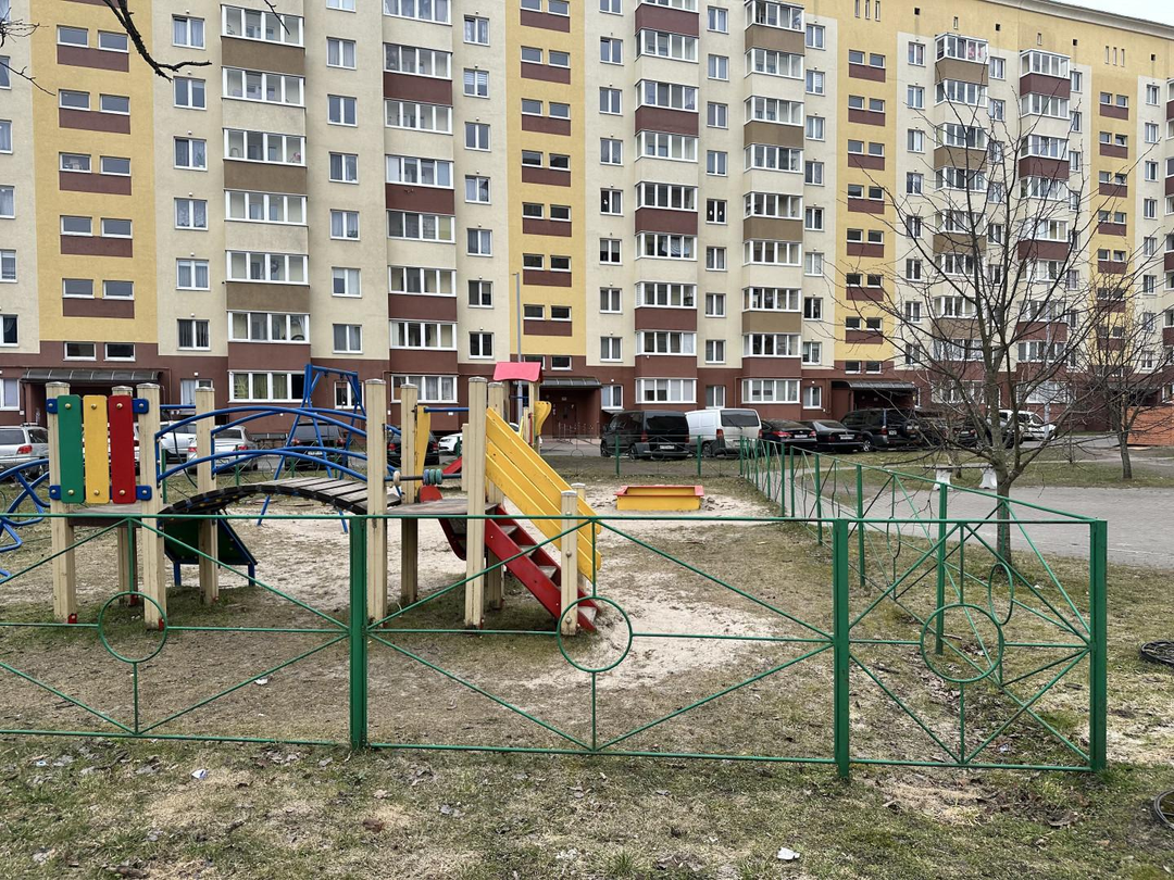 Благоустроенный двор с ландшафтным дизайном, ухоженными клумбами, детской развлекательной площадкой и местами отдыха для жителей дома.