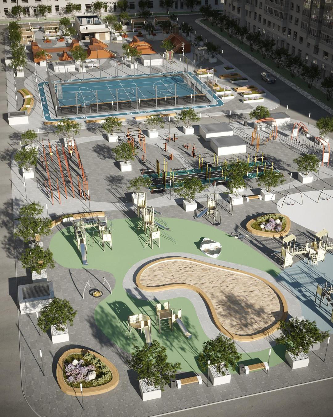 Современные спортивные площадки и скейт-парк