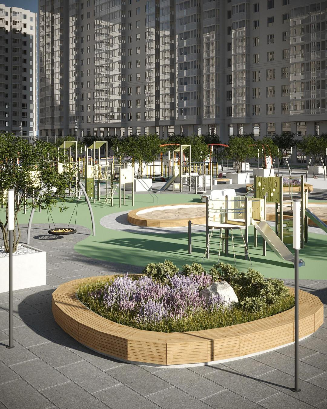 Безопасная детская площадка с песочницей