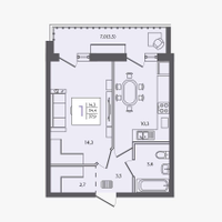 • Жилая площадь 14,3 м²