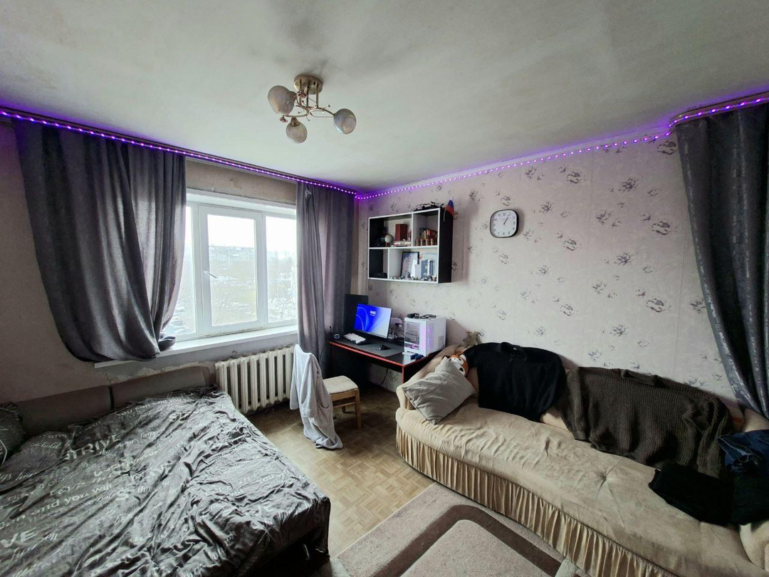 Особенности квартиры:Просторная комната с двумя окнами (на восток и юг) необычной формы, что позволяет легко зонировать пространство для отдыха и работы.Длинный балкон с видом на набережную, в темное время суток открывается вид на часть Китая.Совмещенный санузел.Новая входная дверь.Кондиционер (установлен в 2025 году) и вся необходимая мебель остаются по договоренности.
