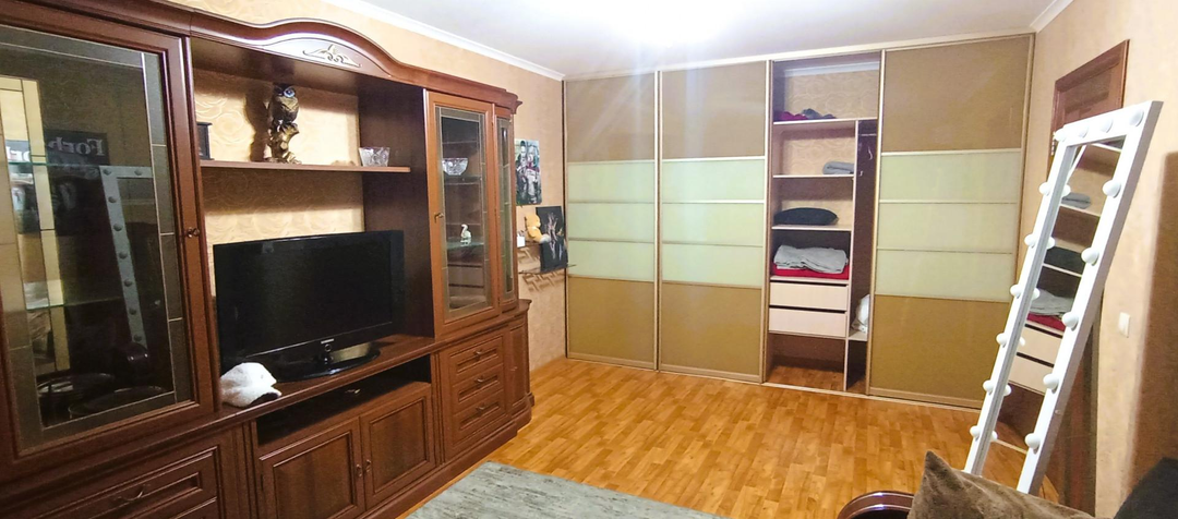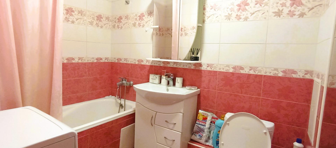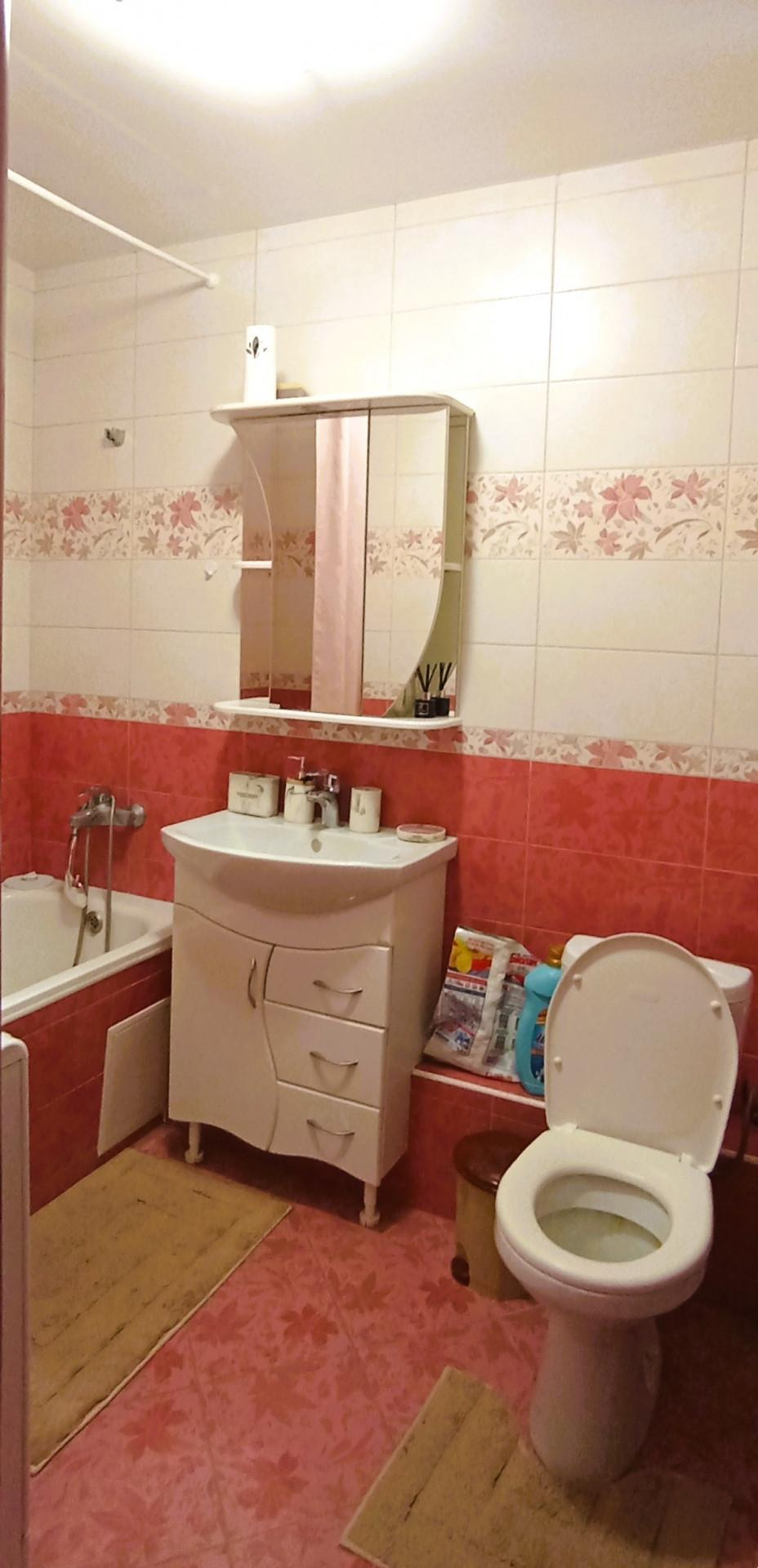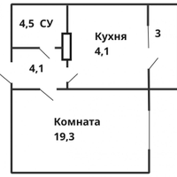 Просторный санузел, большая комната и кухня с выходом на лоджию. Окна выходят в тихий зеленый двор.