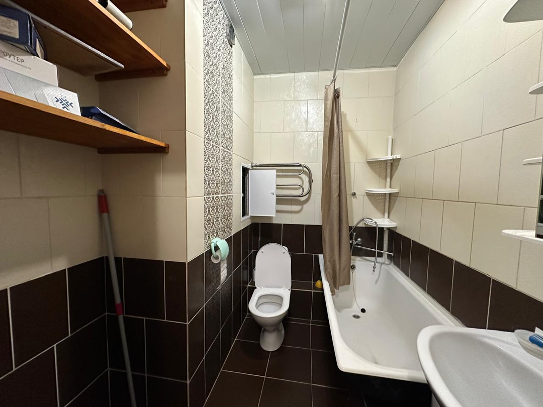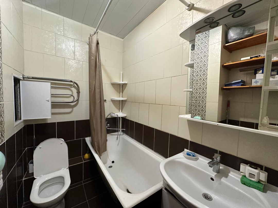 Совмещенный санузел 3 кв.м. с установленной ванной.