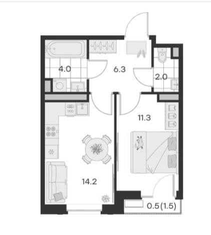 Ваша идеальная 1-комнатная квартира 38.3 м² в современном ЖК "G3 Михалевич" – комфорт и стиль!