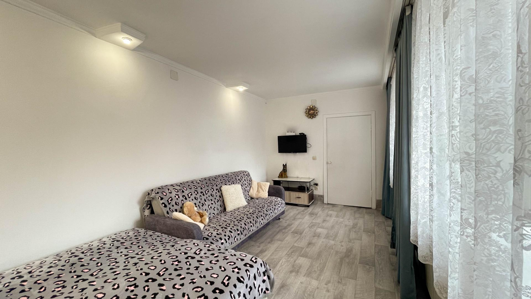 О квартире:Просторная нестандартная планировка (площадь в ЕГРН 38,4 кв.м.)Балкон выходит на газон с взрослыми деревьямиВ квартире выполнен хороший косметический ремонт (на полу линолеум, натяжные потоки, окна ПВХ свежая проводка)Покупателю остаётся кухонный гарнитур. Остальная мебель по договорённости