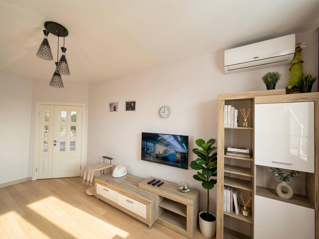 Современный комфорт: Для вашего удобства в квартире установлен кондиционер, который обеспечит приятную прохладу в жаркие дни. А для идеального порядка в вещах предусмотрена вместительная гардеробная комната, где с легкостью разместится весь ваш гардероб!