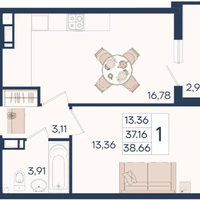 • Общая площадь 38,7 м²