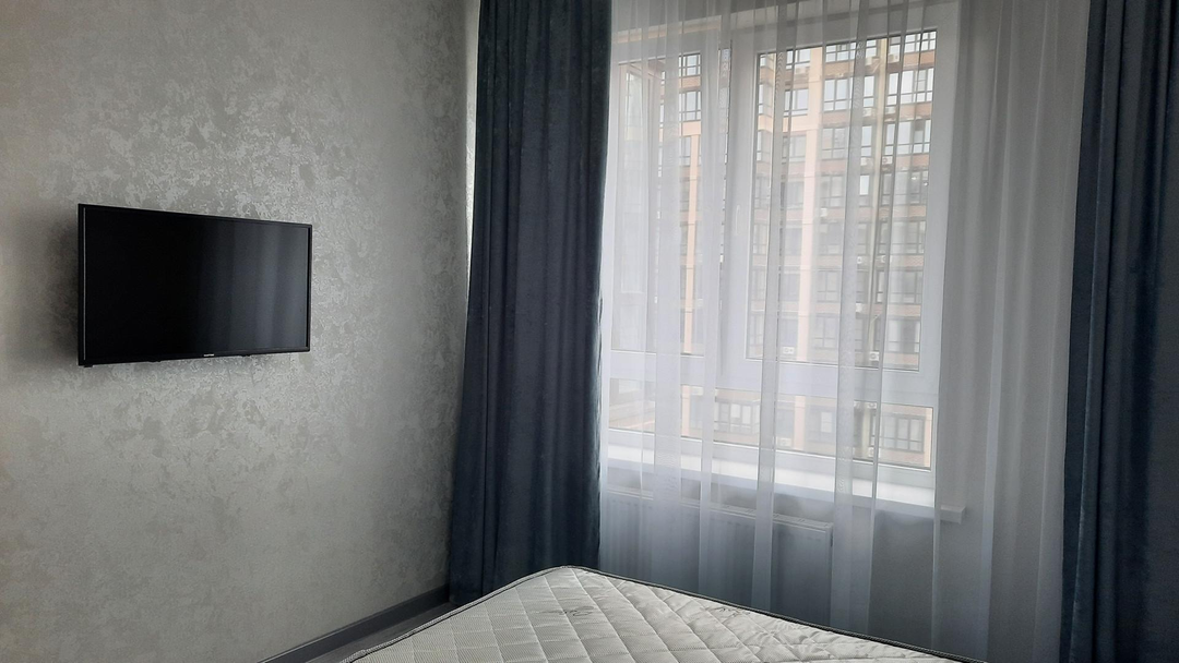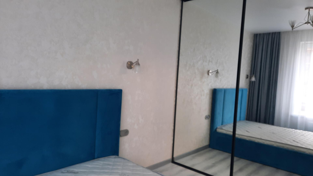 * Спальня: двуспальная кровать с ортопедическим матрасом, шкаф‑купе с зеркальными дверцами, прикроватные тумбочки,плоский телевизор.