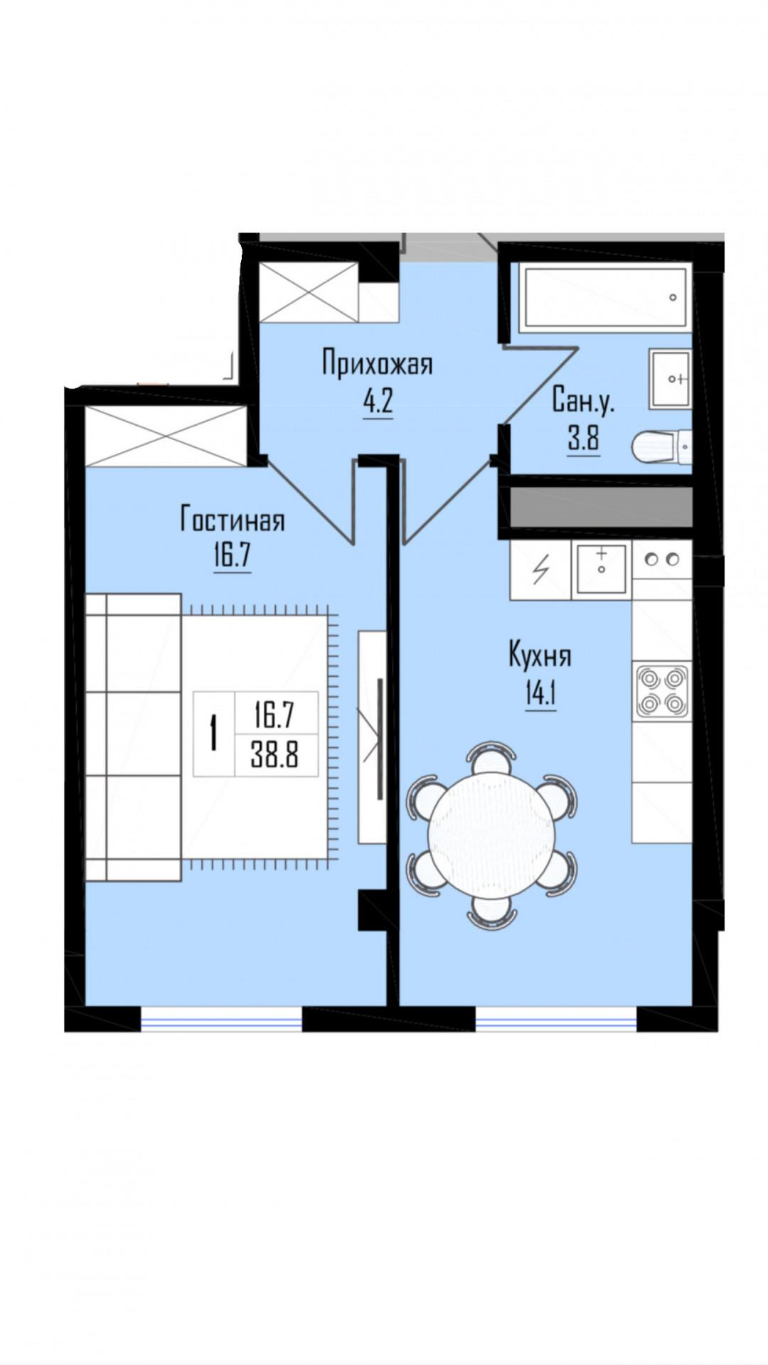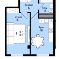 В продаже однокомнатная квартира Общая площадь - 38,8 кв.м.Площадь комнаты - 16,7 кв.м.Площадь кухни - 14,1 кв.м.Совмещенный санузелИндивидуальное отопление