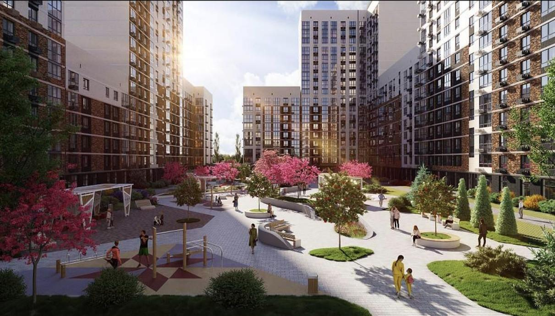 Для активных жителей комплекса созданы пешеходные и велодорожки, а также многофункциональные спортивные площадки.