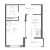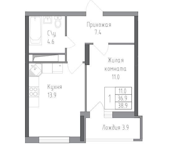 38,9 м²