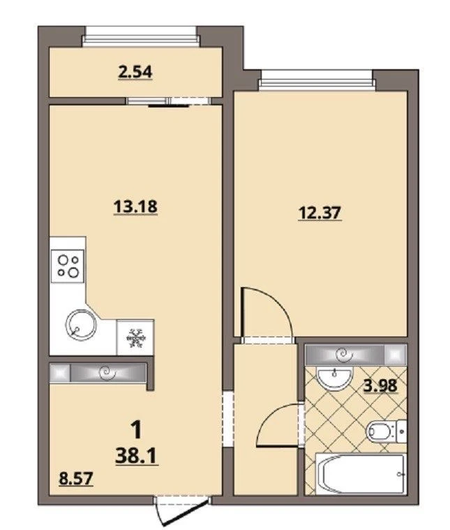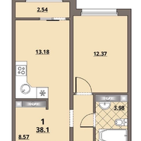 Общая площадь квартиры 38.9кв.м