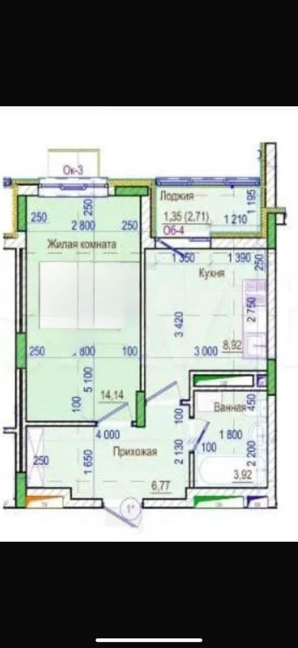 Общая площадь: 38 м²