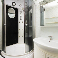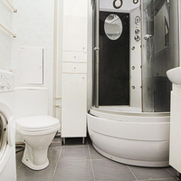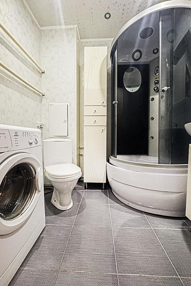 в ванной: стиральная машинка, пенал, тумба под раковину;
