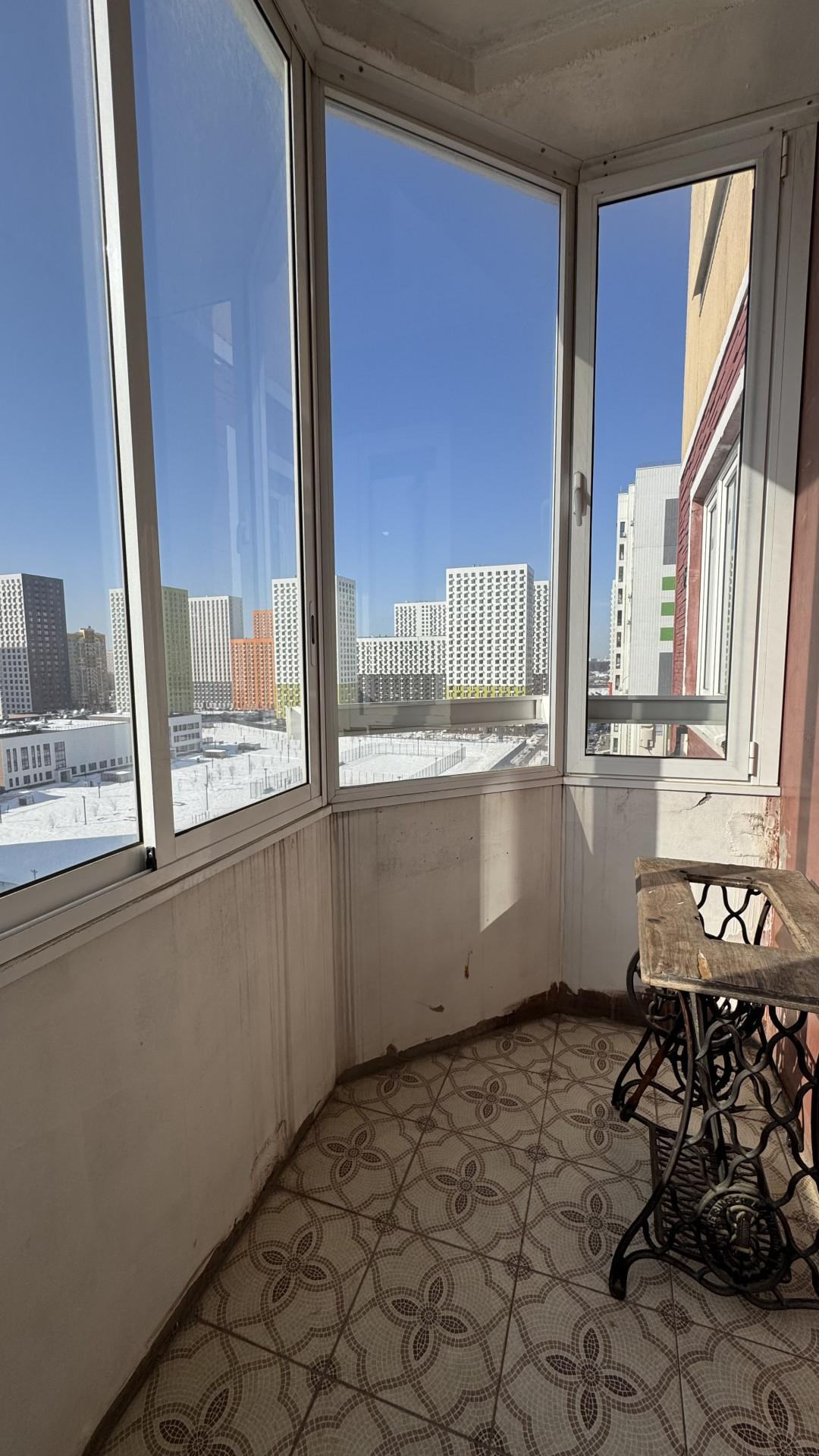 Просторная застеклённая лоджия - окна выходят на юг.