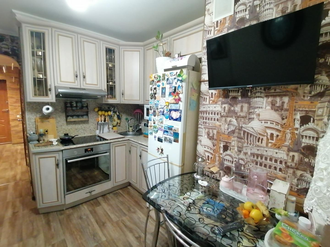 Остаётся: Кухонный гарнитур (индивидуальный проект). Вся встроенная техника -духовой шкаф, варочная плита, новый кондиционер, люстры, шкаф в прихожей.