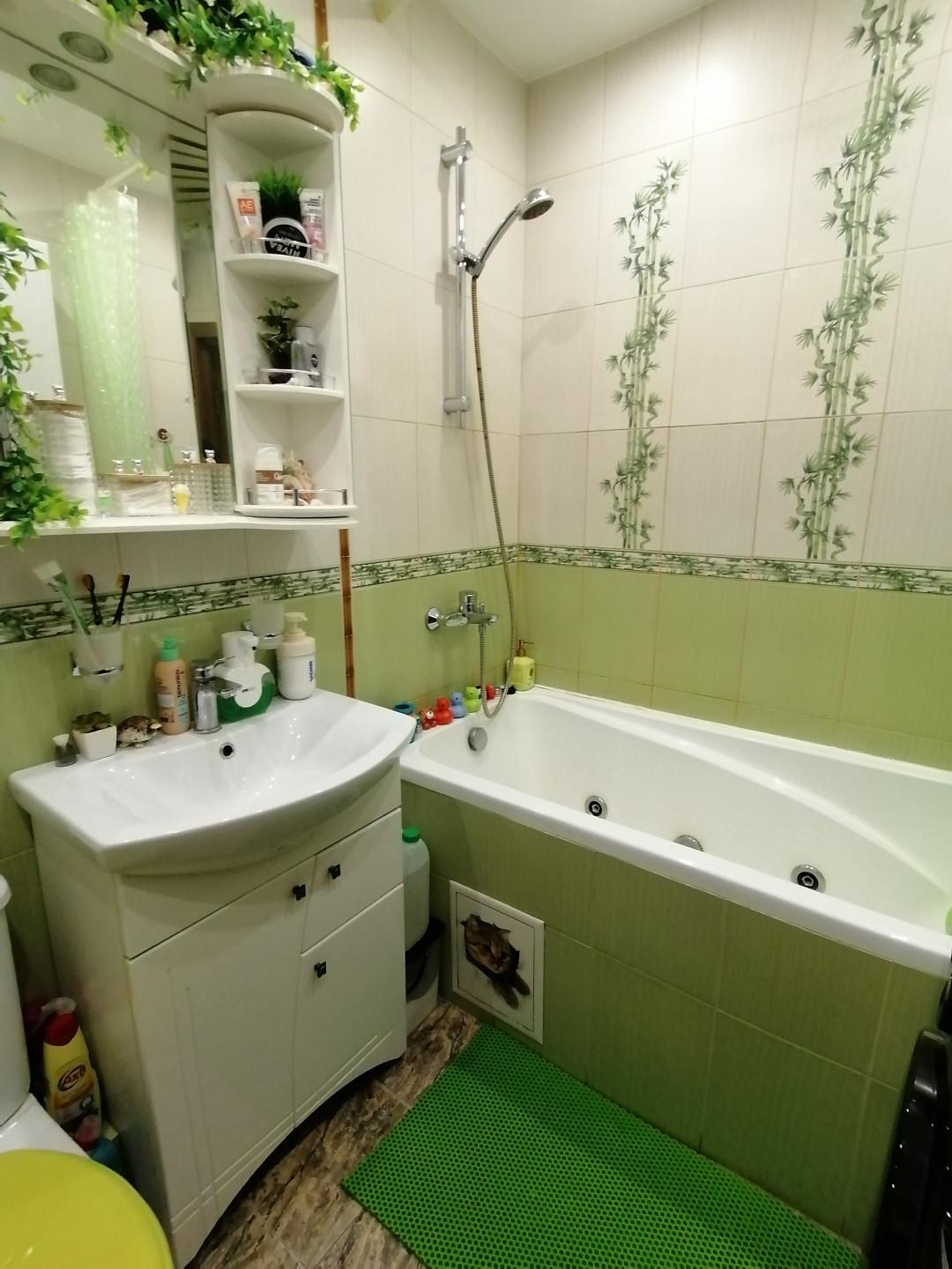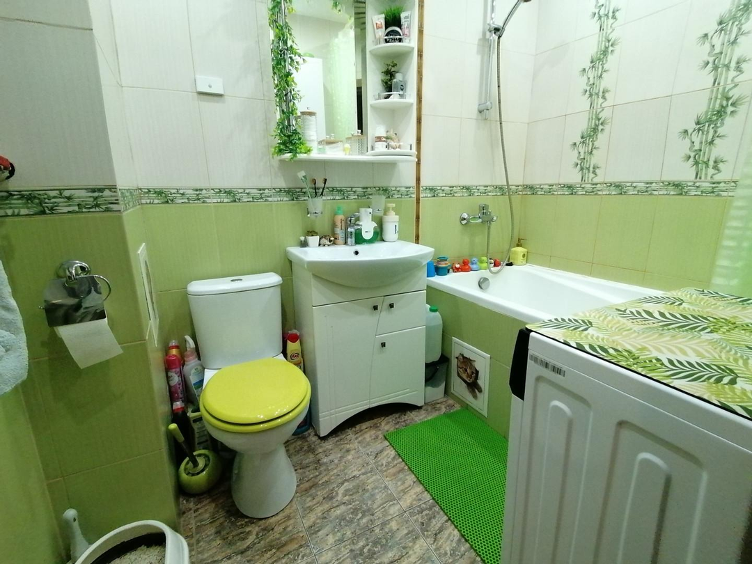 В совмещённом санузле установлена новая сантехника.