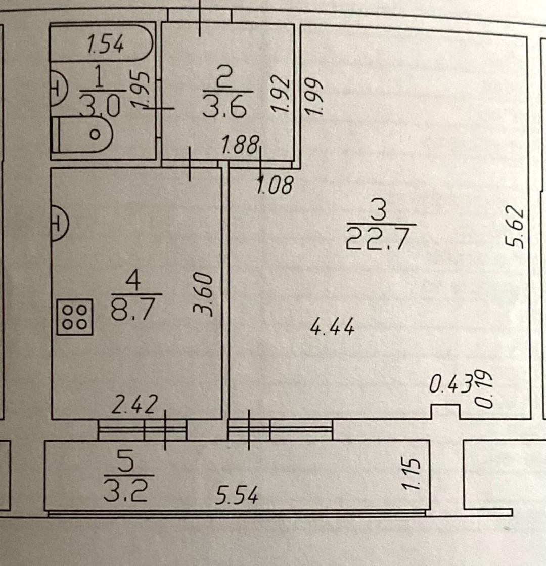 Oбщая площaдь - 38 по ЕГРН, + лоджия 6,4 кв.м.