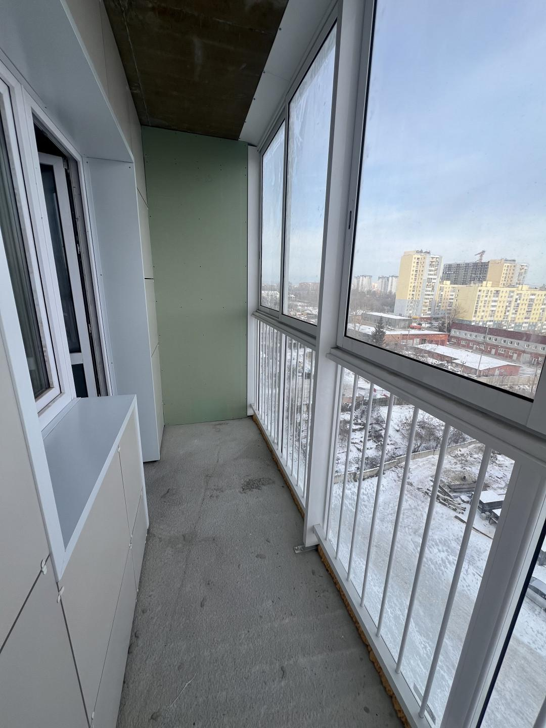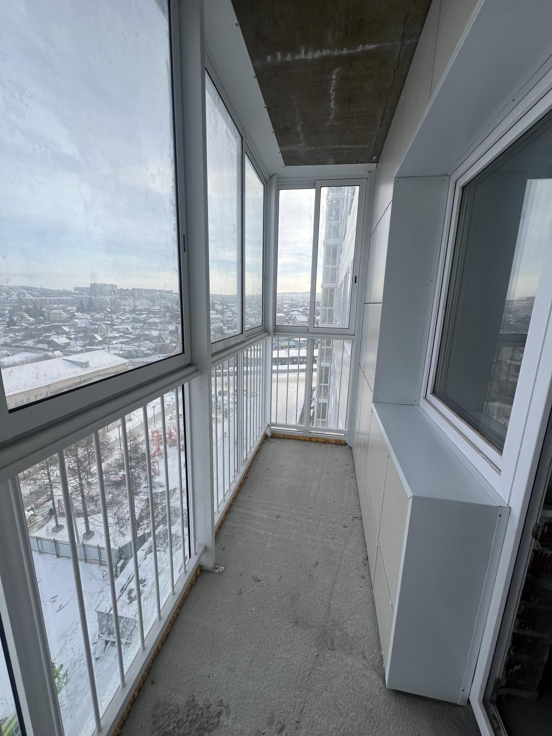 Предчистовая отделка- на полу стяжка , в ванной гидроизоляция, стены шпаклевка, отличный вид на город .