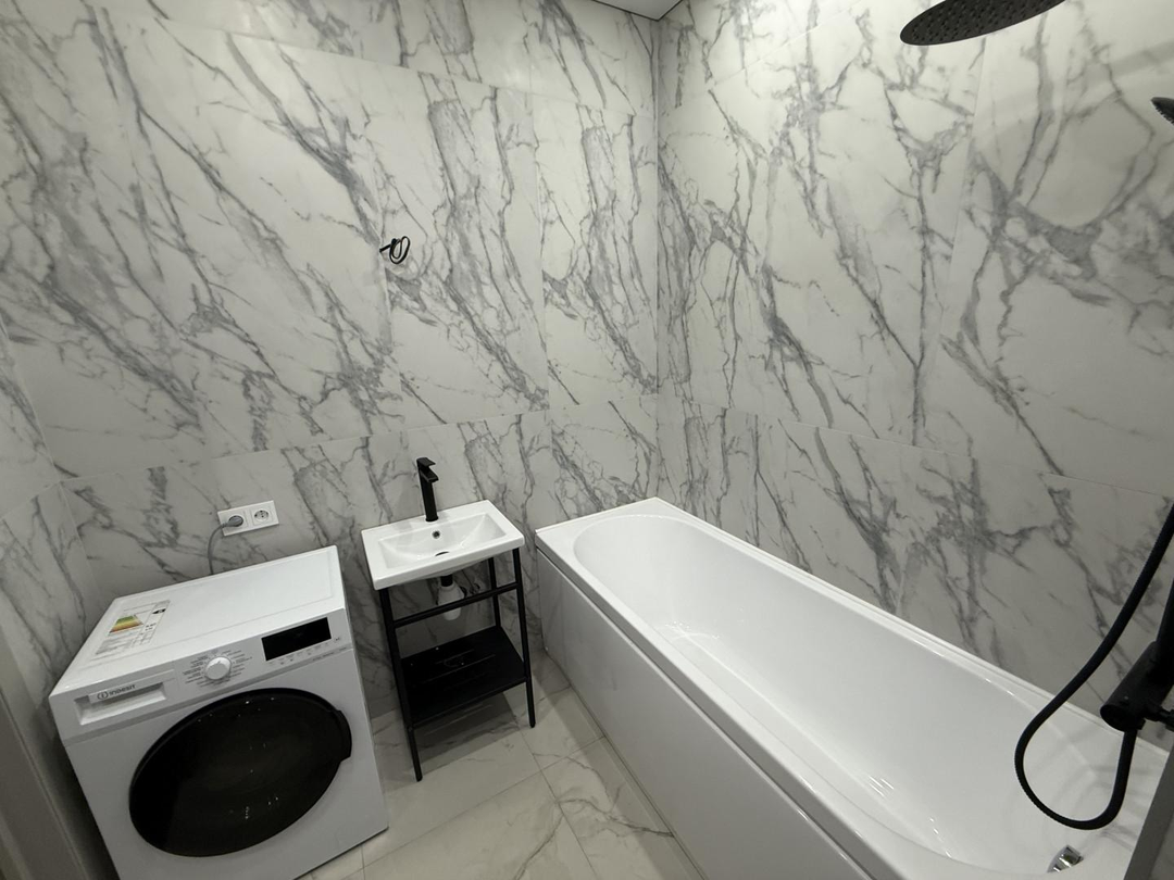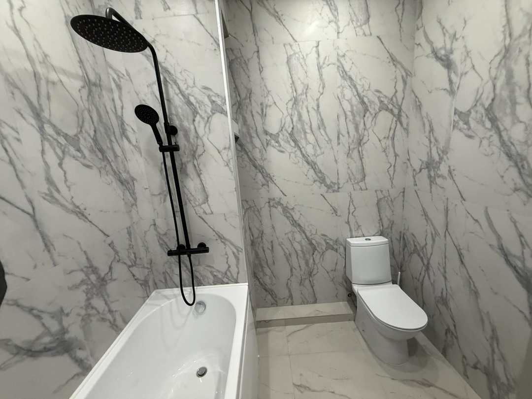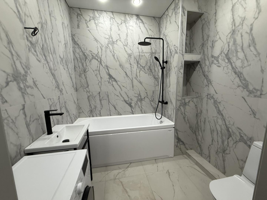 • Просторный совмещённый санузел в светлых тонах