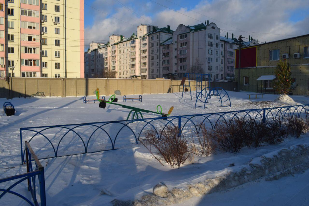 Вокруг жилого комплекса территория огорожена, обустроена детская и спортивная площадка