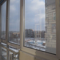 Большой балкон с тёплыми полами и небольшими стеллажами для хранения
