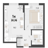 1-к. квартира, 39,9 м²
