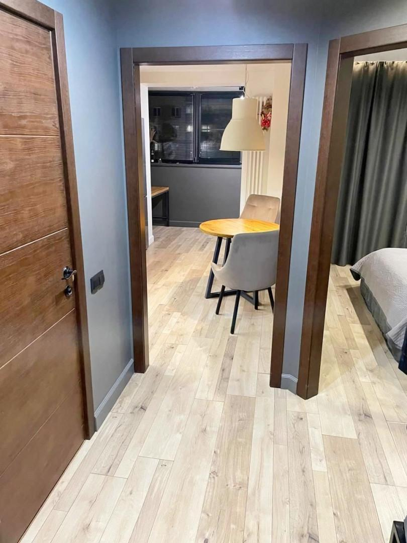 Состояние квартиры отличное. В квартире выполнен дизайнерский ремонт: ламинат, керамогранит, керамическая плитка, обои, натяжные потолки.Установлены пластиковые окна, межкомнатные двери, железная входная дверь, люстры, точечные светильники, бра, счетчики , гардины, шторы. Квартира с удобной планировкой: гостиная с вместительным гардеробом, просторная кухня с выходом на утепленною оборудованную лоджию , прихожая, совмещенный большой сан.узел. Квартира видовая, светлая, тёплая, не угловая;