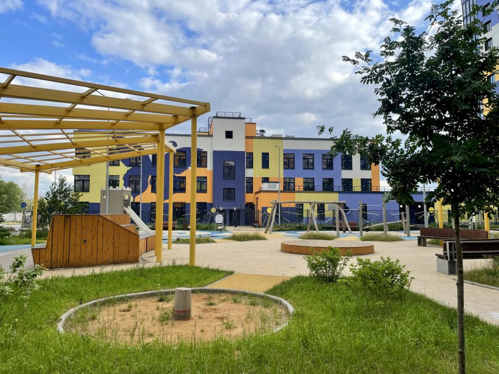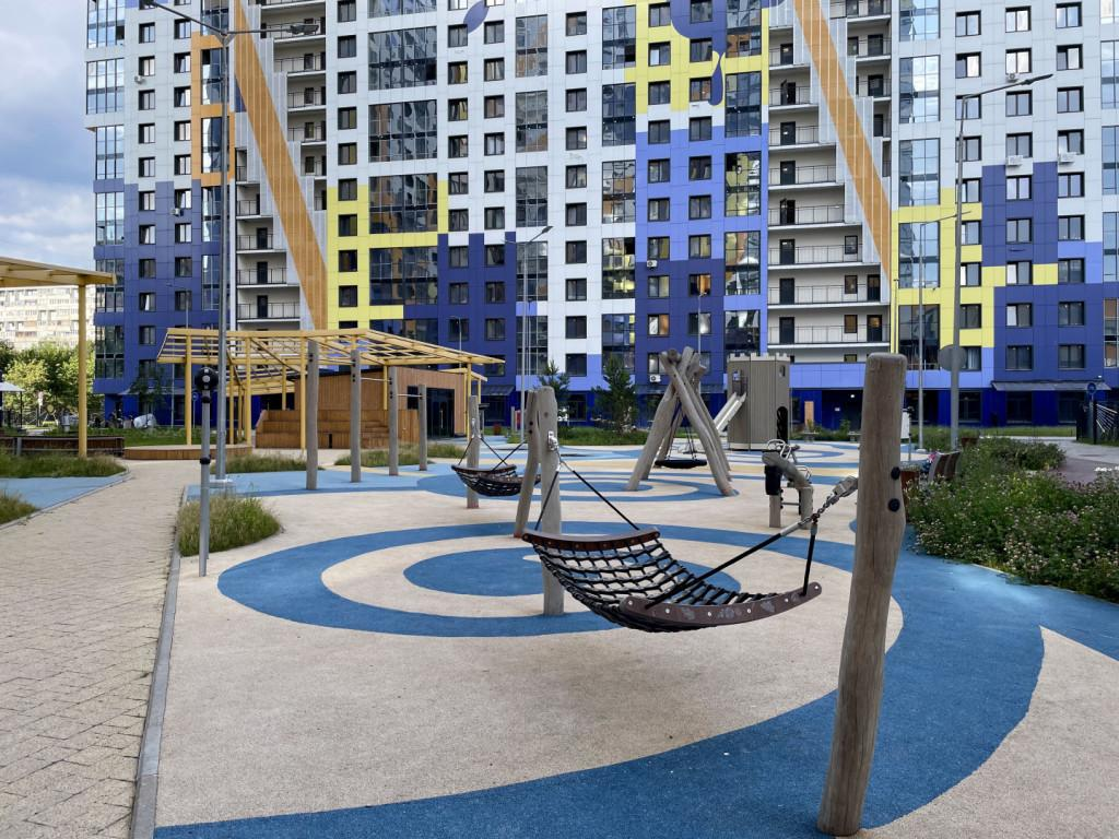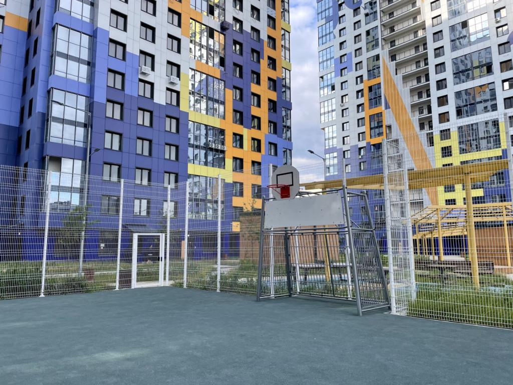 О доме и ЖК:Современный яркий комплекс с благоустроенной территорией.Двор без машин, детские и спортивные площадки, зоны отдыха.Детский сад на территории, планируется ещё один.