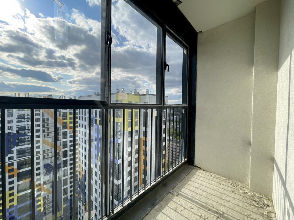 О квартире:25 этаж, панорамные окна, балкон.Черновая отделка (кроме ванной — плитка уже уложена).Функциональная планировка, высокий этаж, вид на зелёный район без будущей застройки.Свободная продажа: 1 взрослый собственник, без обременений, быстрый выход на сделку.