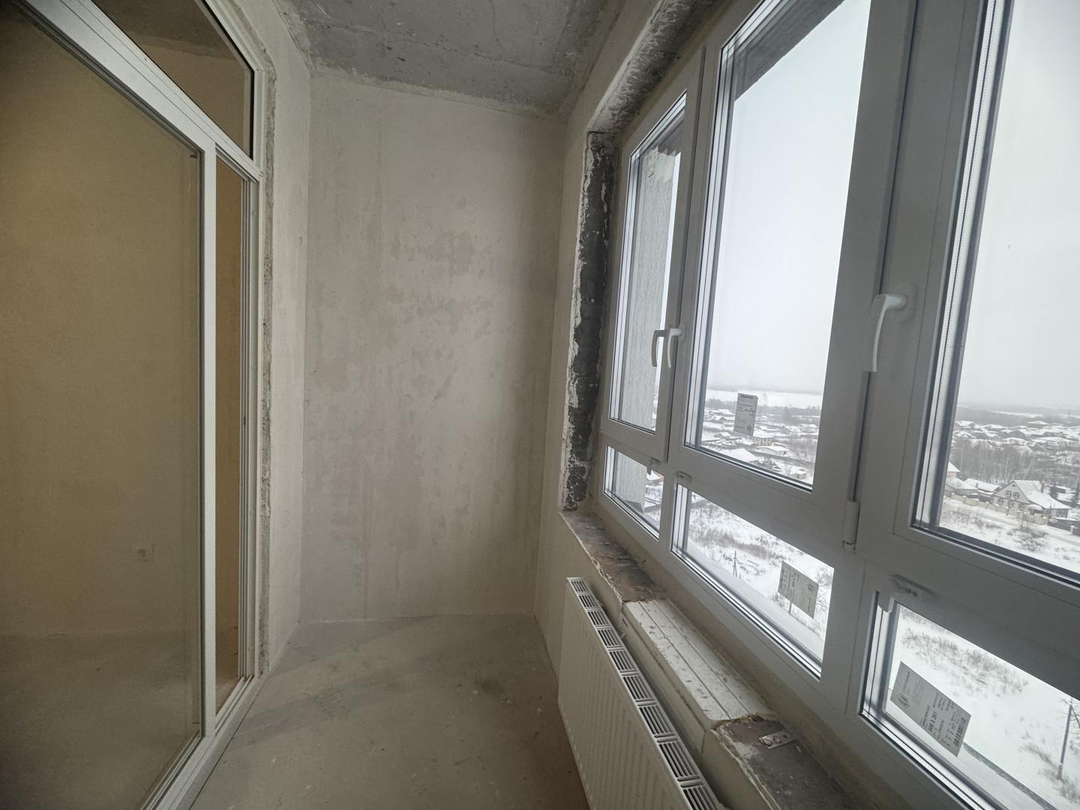 Располагается на 12 этаже, включая шикарные видовые характеристики на весь город: из окон видны два озера и частный сектор, что предполагает отсутствие в будущем застройки перед окнами.
